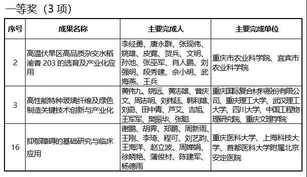 二是获奖项目经济社会效益显著。10个项目均为与经济社会发展密切相关的科技进步奖,产学研融合向深层次演进,一等奖成果水稻渝香203新品种在重庆、四川等省市累计推广1137万亩,新增效益37亿元。