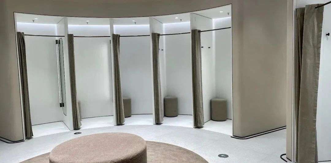 试衣间的面积应该是有意识优化过。大小刚好够塞一个人,蹲下就可以实现面壁思过,婉拒着光拍不买的博主,和试一次衣服自拍一小时的人们。