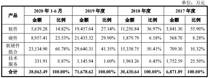 硬件及软硬件组合的解决方案营业比例上升,收入高速增长,实现高速复合增长达223%