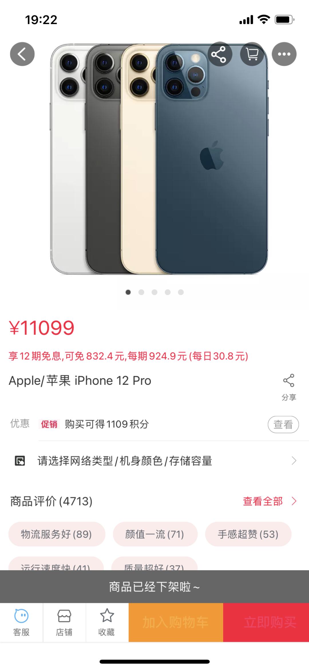 无论是无货还是手滑,苹果在双十一期间作出如此动作必然引起了吃瓜爱好者的关注,“iPhone 12下架”的词条甚至一度进入了微博热搜前五。截止到晚上七点半,iPhone 12 Pro依然是下架状态,iPhone 12虽恢复供应,但货源也极为紧缺。