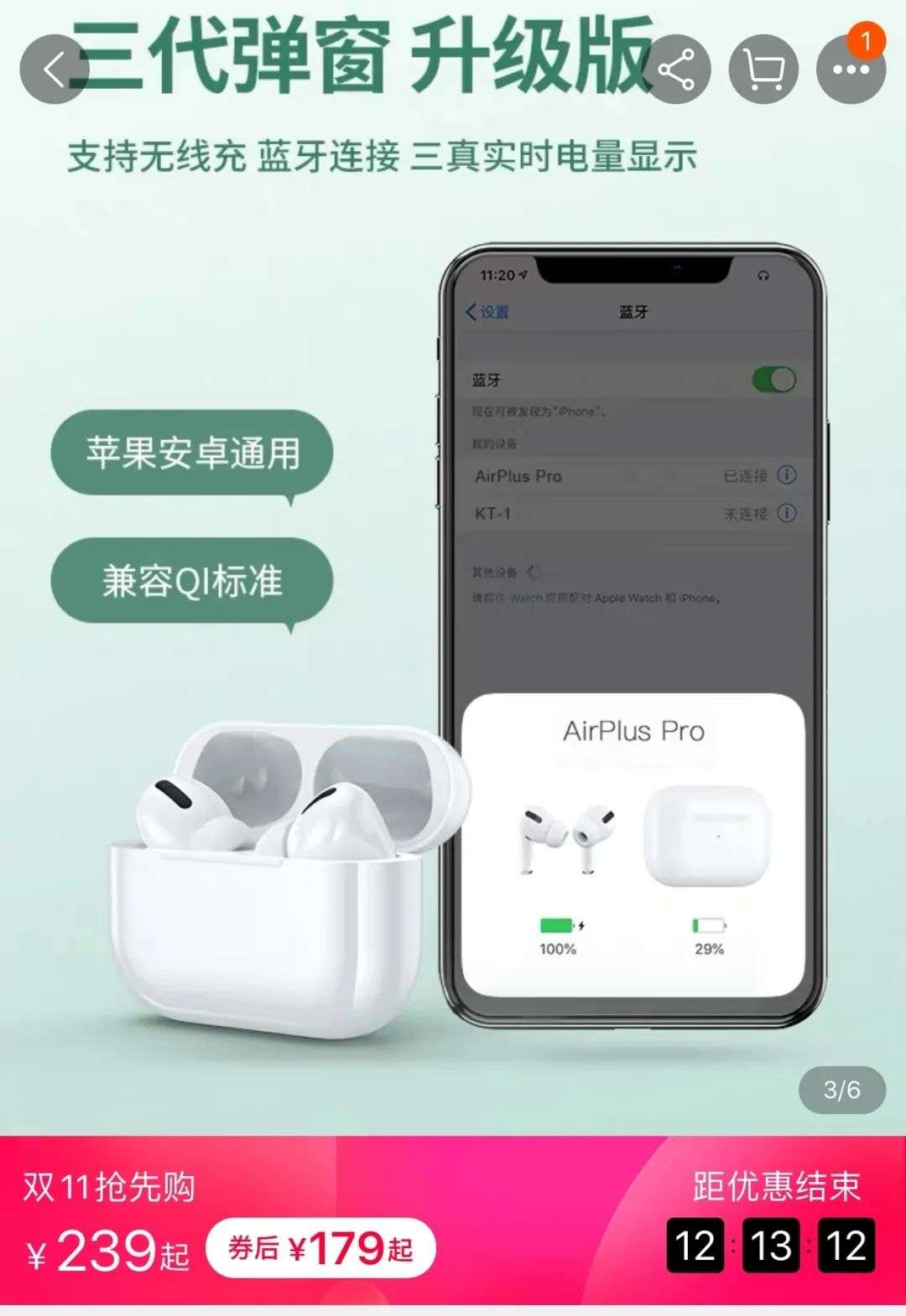 山寨AirPods店家在某电商平台的宣传图