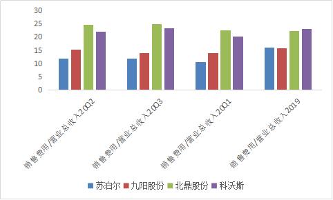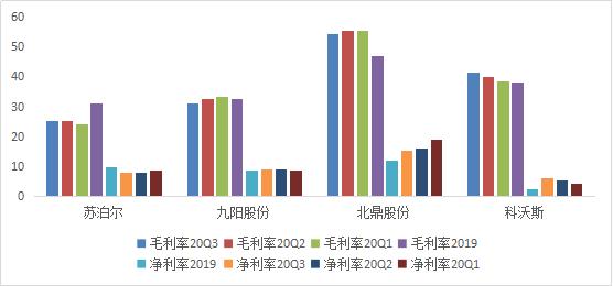 从财务数据来看,这一特征也非常明显。以北鼎为例,2020年Q3北鼎的毛利率为54.2%,但同期净利率仅为15.5%。毛利率和净利率之间的差异,体现了销售费用持续扩张对获利空间的蚕食。