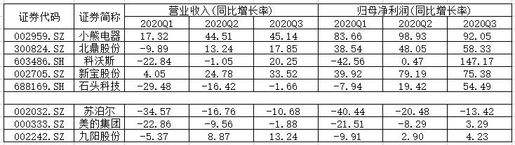 图2:年内小家电股价涨幅(截至2020年11月5日)