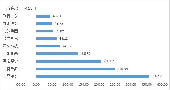 受业绩扩张推动,年初至今,以北鼎、小熊、科沃斯、新宝等为代表的的网红小家电受到资本市场的青睐,年内股价均已实现翻倍,家电巨头美的集团也实现了年内51%的股价涨幅。