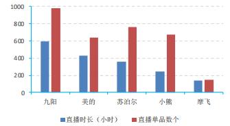 对于网红小家电而言,另一个巨大的威胁来自传统小家电企业反向扩张带来的竞争加剧。目前,以“美九苏”为代表的的传统小家电企业,由于资本雄厚,扩展内容营销的步伐在加快,目前直播场次和直播时长均居于前列。