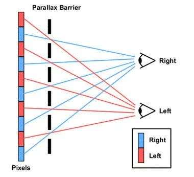 而用在个人电子产品上运用更广泛的则是光栅栏法,其中最著名的代表产品莫过于任天堂的掌机 3DS。