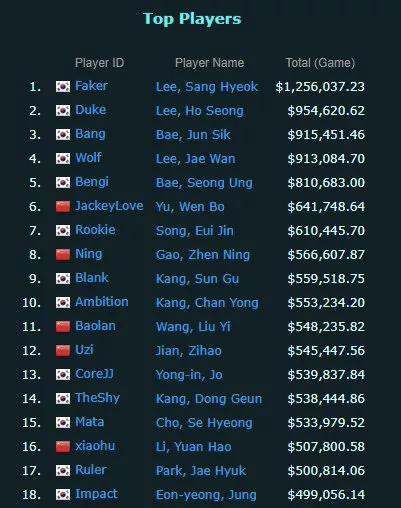2019英雄联盟全球奖金榜