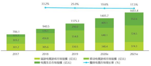 2017-2021年我国电竞整体市场规模