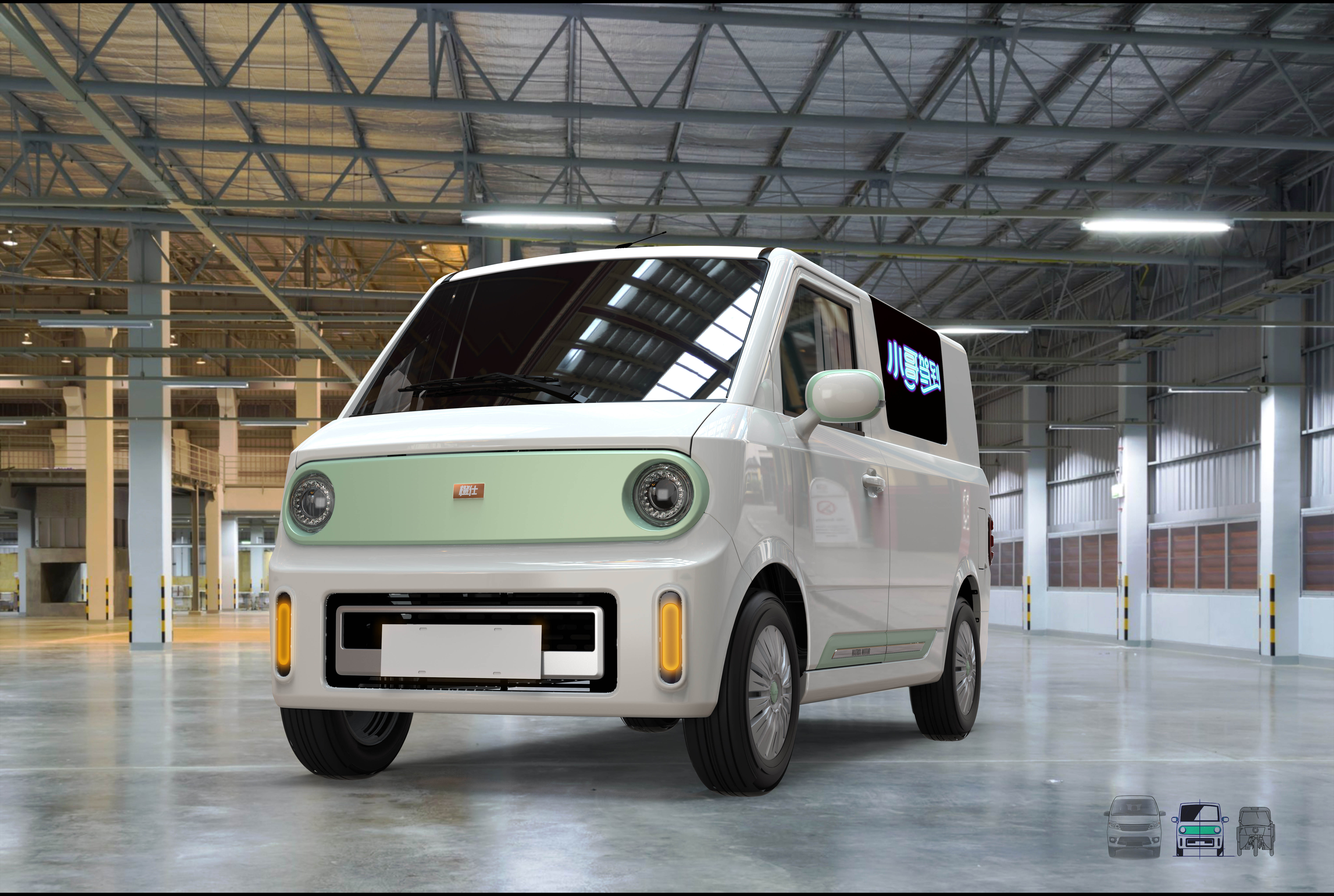 矩阵科技即将推出的一款车是橙仕01,外观设计参考了MUJI风格,但为了让车适合走街串巷送货,车身小巧的多,货箱体积更大。它的宽度小于1.5米,长度小于3.5米,高度为1.7米。货箱体积达2.6立方米,可运0.6吨货物。车顶配备了随开随关的顶棚,方便运输冰箱空调等高度过高的货物。谷祖林表示,这辆车的设计过程邀请了快递员亲自参与。