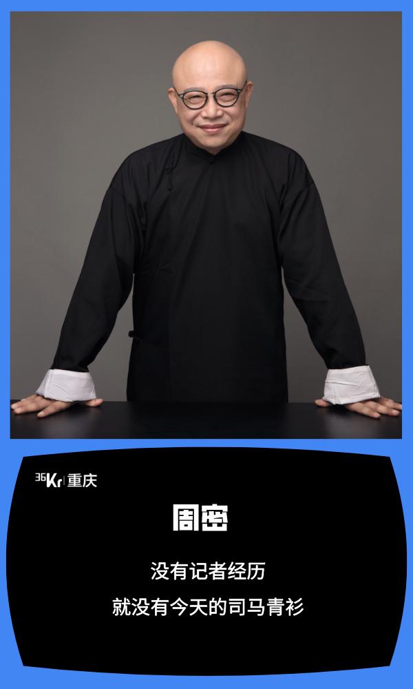 2002年-2015年,周密在《重庆商报》当财经记者、行业总监、房产部副总。从报社出来后,通过自媒体创业,把自己打造成了一个IP,出了一套畅销书《水煮重庆》。因了那句著名的唐诗“座中泣下谁最多,江州司马青衫湿”,他又是研究重庆史的,于是给自己取了一个笔名:司马青衫。