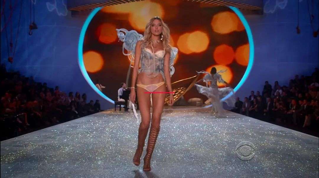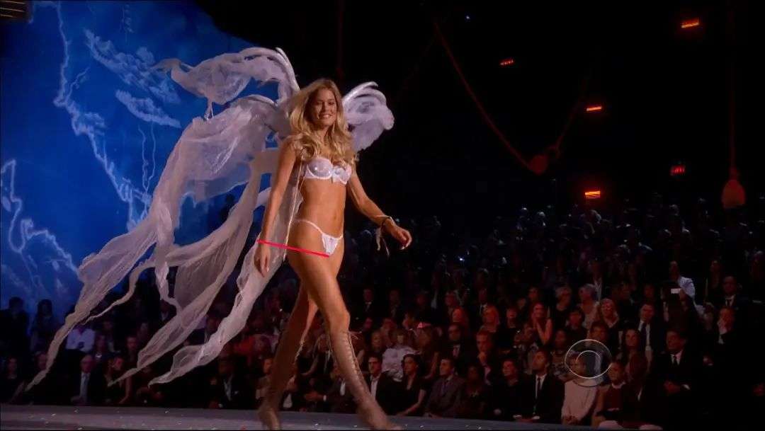 在维密秀场上,大多数模特,都满足过裆或者齐裆这一标准。