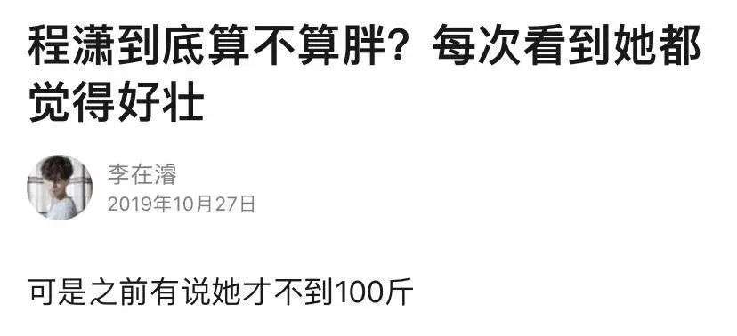 身高166cm,体重51.2kg的程潇,会被网友评价“壮”、“胖”、“腿粗”。