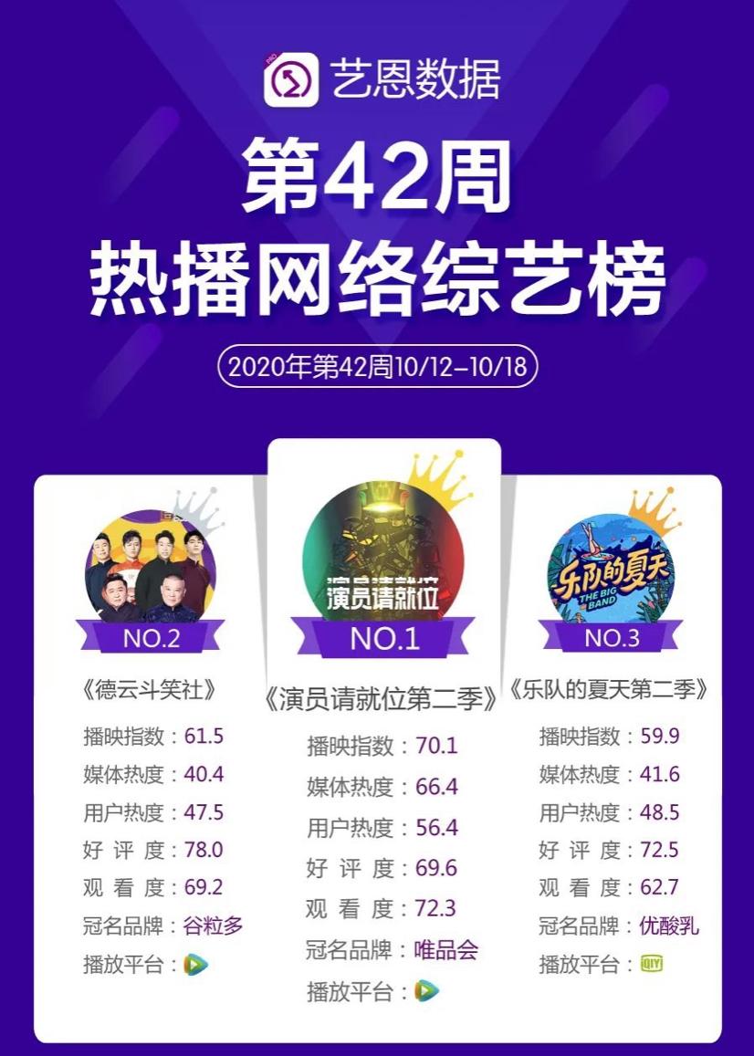事实上,从第三季度的“小爆款”和第四季度《演员请就位》的“开门红”来看,在现有的综艺品牌上进行创新,或许是“综N代”们持续吸引观众的关键。