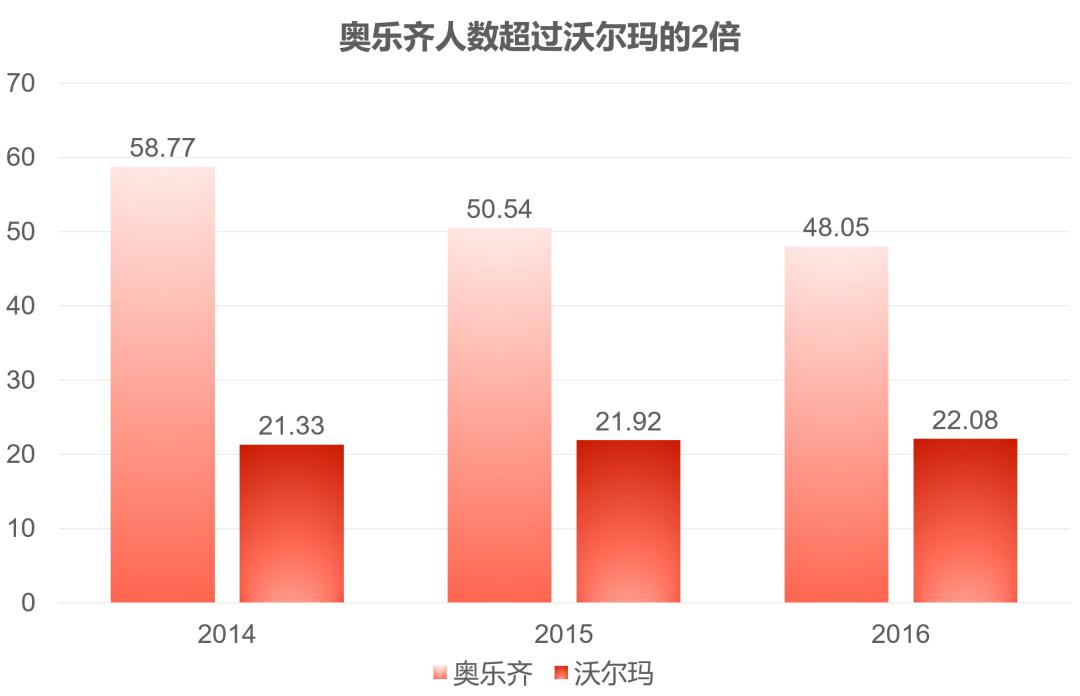 不只是降低运营成本和采购成本,奥乐齐所有者甚至愿意为了更低价格减少股东分红,这使得奥乐齐的产品价格从根本上有不可动摇的竞争力。毕马威调查数据显示,奥乐齐商品的价格较一般超市便宜20%~30%,个别商品较沃尔玛便宜50%多。