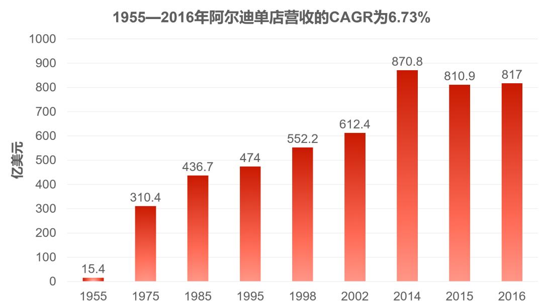 时至今日,奥乐齐在全球10余个国家拥有超过1万家店铺。《2020年BrandZ最具价值全球品牌100强》中,奥乐齐以159.27亿美元的品牌价值排名第84位。2010-2015年奥乐齐收入复合增速高达8%,同期德国GDP平均增速不到2%。