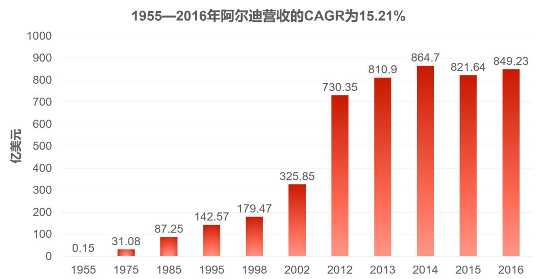 奥乐齐是全球排名第八的零售品牌,它以出售折扣商品出名,曾把沃尔玛逼出德国市场,因为其严格控制成本,其利润反超行业平均水平。资料显示,德国零售企业的销售利润率平均为0.5%-1.5%,奥乐齐却达到5%。其拥有者家族财富超过宝马的拥有家族。