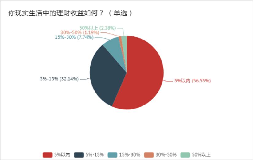 阿文就像一条泥鳅游进了大海,发现自己连咸鱼都做不了,又回到了自己的池塘。很多人的投资都是这样,虽然辉煌过,但没有保住利润,最终收益率并不尽如意,调查问卷显示,超过88%的人收益率都在15%以内,56.55%的人收益率在5%以内。