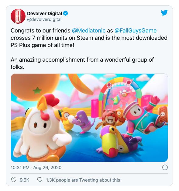 据发行商 Devolver Digital 透露,在发售不到一个月时间内,《糖豆人》 Steam 版的总销量已达到700万份。成绩极为夸张。因为对于一款3A大作而言,这也不是短时间内能够轻易触达的数字。