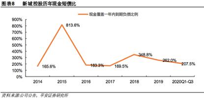 2020年8月20日,住建部、央行召开的重点房地产企业座谈会传递出控负债、稳房价的两大重要信号,确认了房企融资的“三道红线”:剔除预收款后的资产负债率不得大于70%,净负债率不得大于100%及“现金短债比”小于1。可见,在监管的这几个方面,新城控股基本维持了不错的水平。