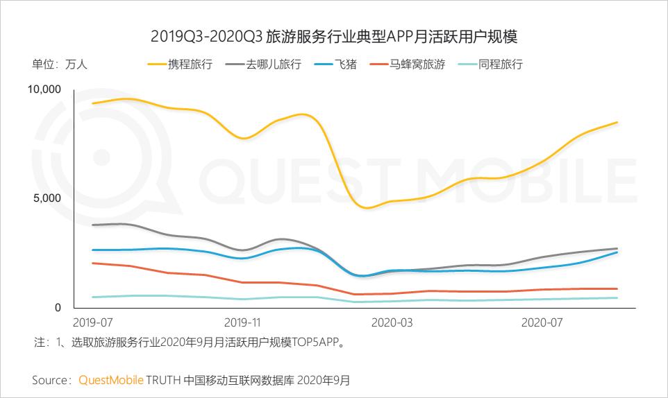 3、国内旅游业务Q3回暖,旅游票务平台APP活跃用户规模直线提升