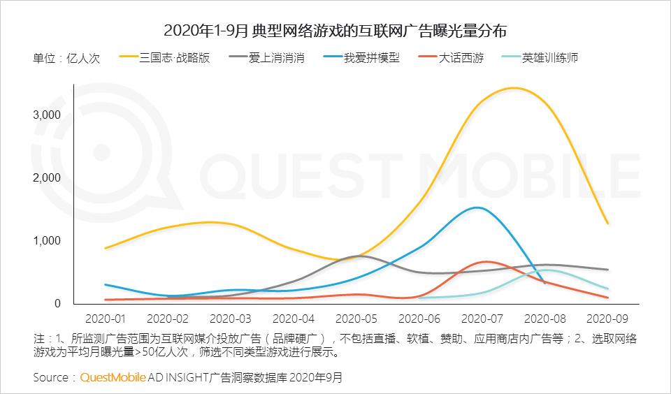 1.1 网络游戏投放是暑期热潮,典型游戏在暑期出现曝光量峰值