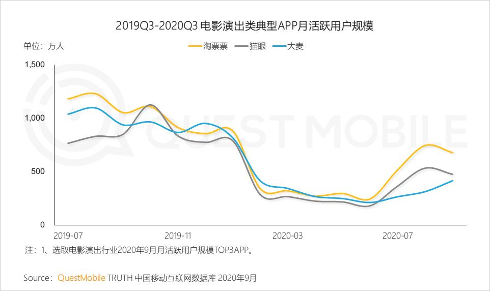 1、Q3电影行业整体正在复苏,线上票务平台的用户活跃度开始回升,线下场景逐渐恢复