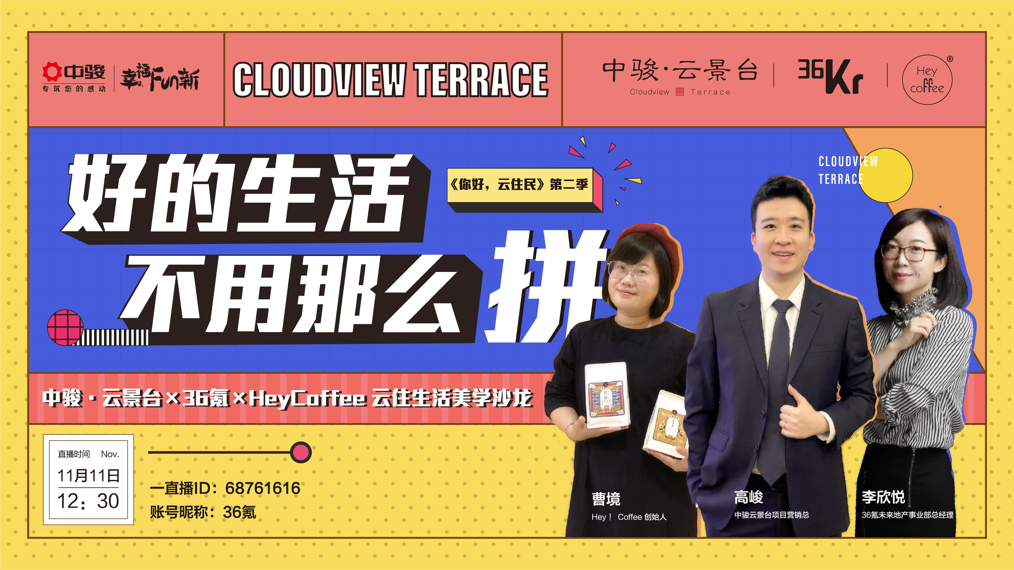 但是,好的生活不一定非得那么拼。11月11日,《你好,云住民》第二季,一场主题为“好的生活,可以不用那么拼”的云住生活美学沙龙直播活动,在中骏·云景台火爆上线开播。