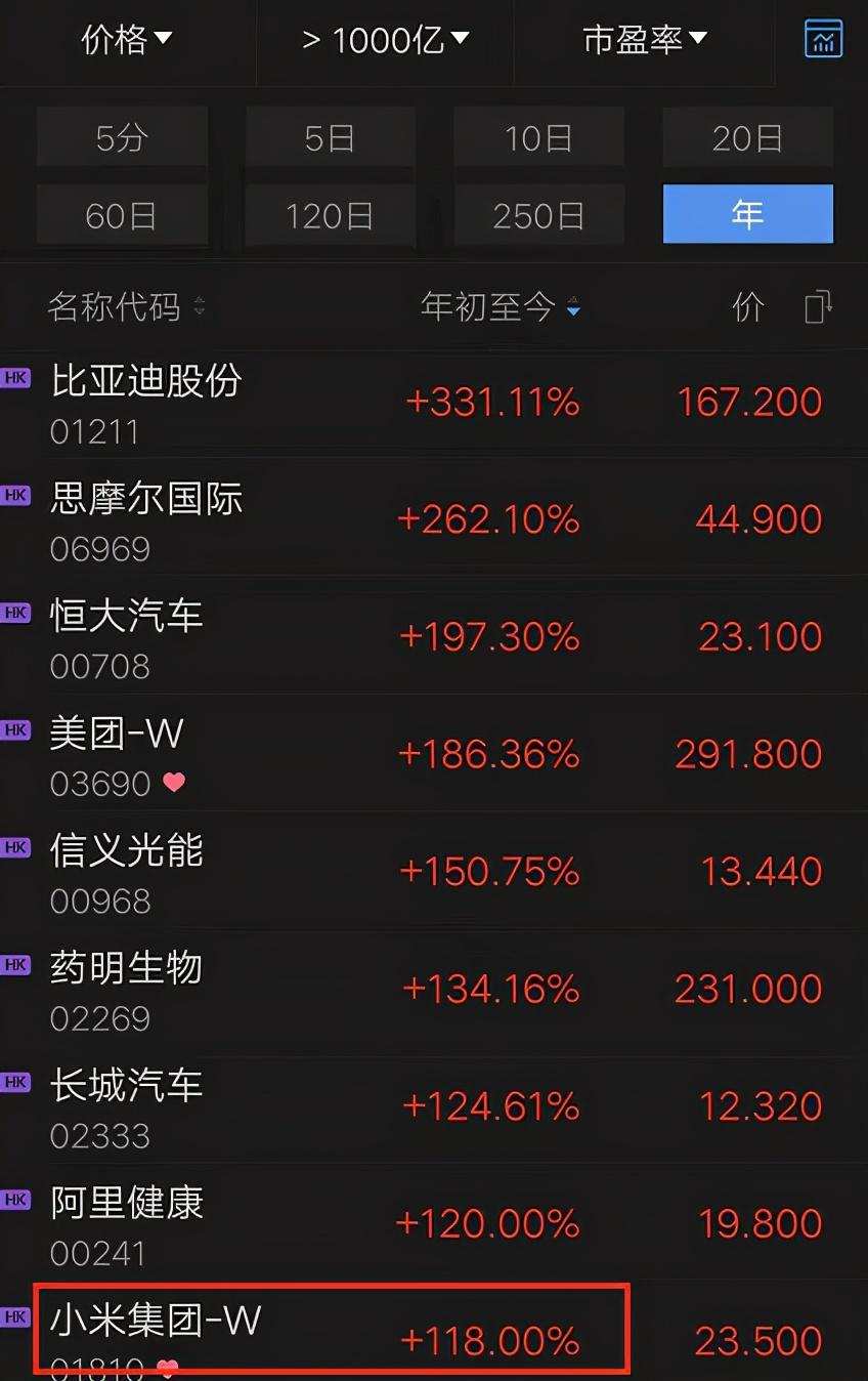 不过,即便如此,从小米今年的股价走势来看,依然处在了港股超千亿市值企业涨幅排行榜上的不错位置,年内涨幅达115%,市值也曾分别在9月和11月初一度站上6000亿港元。这样看来,小米今年在资本市场上的走势依然还是值得肯定的。