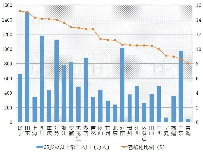 24省份2018年老龄化水平(上海为2017年数据)数据来源:各地统计局官网