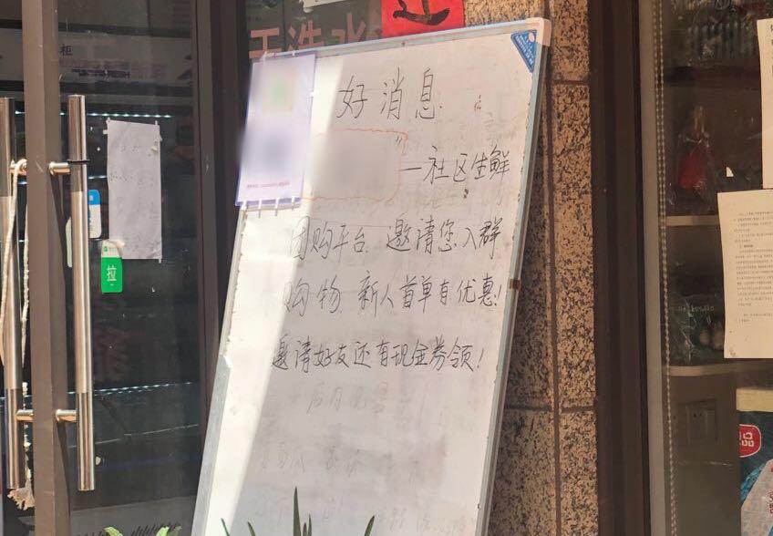 在前往市场的路口,另外两家社区商超的员工索性用小桌子支起了摊位,叫卖当天的促销肉类和果蔬。一位商超员工告诉懂懂笔记,生鲜门店、生鲜电商、社区商超在社区“笼络”用户的情况,已经持续了将近两周时间了。