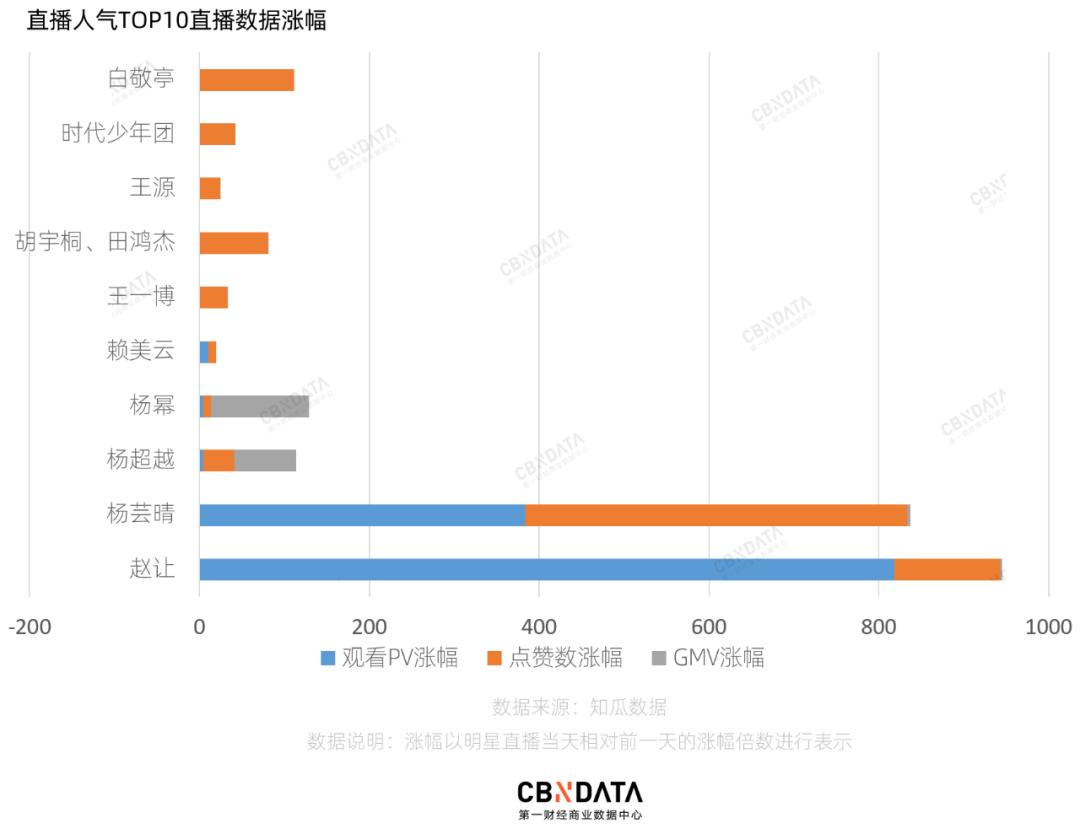 在单场直播的销售额涨幅中,两位女明星杨幂和杨超越表现得异常优秀,涨幅分别高达115倍及72.7倍,不过,这一漂亮成绩单的背后更多了层明星与品牌相互成就的意味。