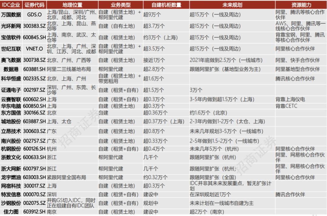 3)传统企业转型,IDC需要充足的土地资源和电力资源,而这正是夕阳钢厂们最不缺的,因此开始大跨步跨界进入IDC市场,有比如宝钢、杭钢、沙钢、马钢等。