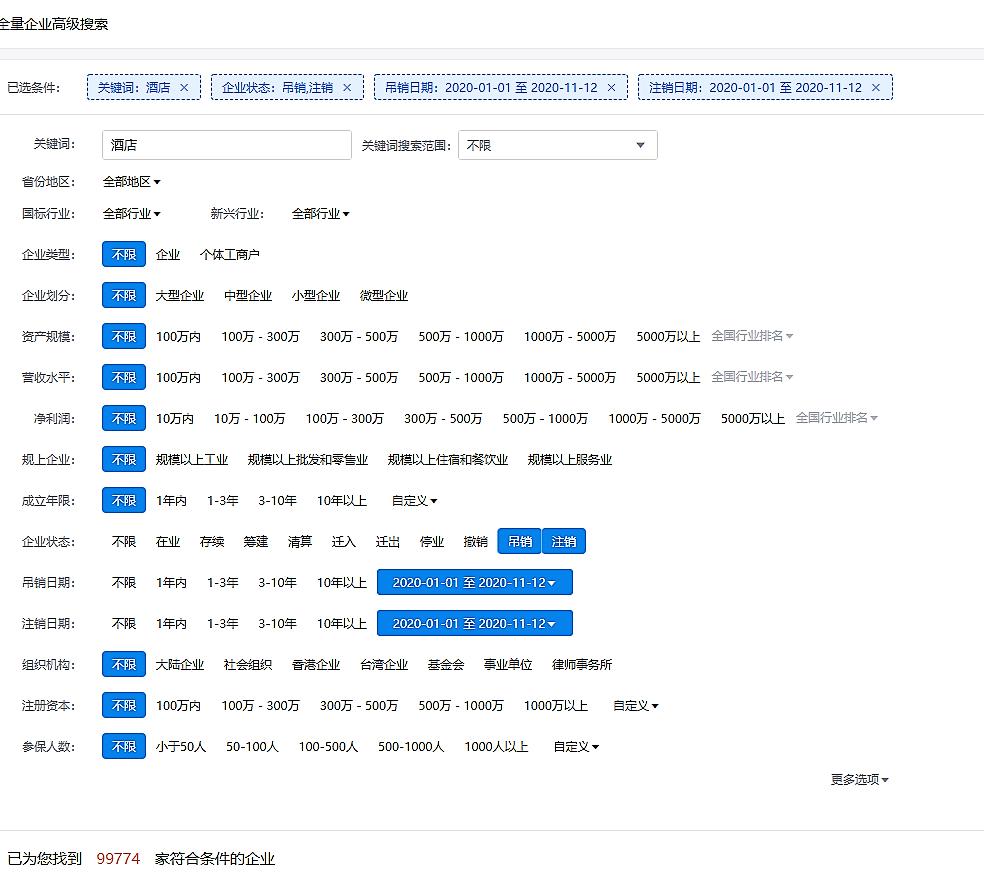 在今年6月的时候,空间秘探在发布《上半年40000家酒店倒闭,数千品牌或迎来最惨烈洗牌》中提及,疫情影响下,酒旅业形势严峻,企查查数据显示,上半年有超过4万家酒店相关企业注销、吊销,一场剧烈动荡在所难免,我们预言这个数字还将继续攀升。崩塌总在悄无声息之中,半年不到的时间,注销、吊销的酒店数量已经攀升到了99774家,今年倒闭的酒店必然会达到10万+。