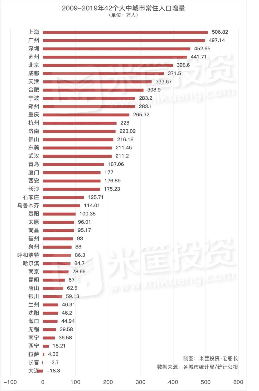 在2009年-2019年间,基本大部分的一二线城市人口都是增长的。