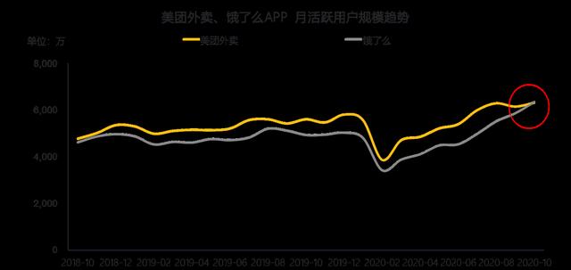 疫情对本地生活商家造成了冲击,自然也带来了本地生活平台的洗牌机会。虽然疫情后流量回升,美团的MAU也达到了2.5亿,但是回升的流量并不够四处征战的美团使用。QuestMobile10月份数据显示,阿里旗下的饿了么在10月份的MAU已经超越美团外卖,这是饿了么近两年以来月活用户首次在App端高于美团外卖。