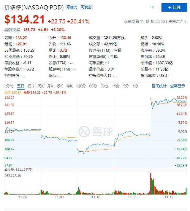 在电商巨头阿里发布新一季度财报之后,拼多多也紧随其后发布新一季度的成绩单。Q3财报发布后,拼多多股价一度涨超20%震惊资本市场,总市值迈过1600亿美元大关。