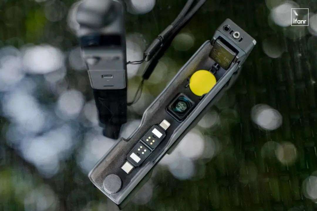 这个小小的「尾巴」,集合了 Wi-Fi、蓝牙、无线麦克风接收器、1/4" 螺纹口、3.5mm 音频接口和 USB-C 充电接口,有了它,Pocket 2 才算完整。转念一想,为什么大疆不把无线功能加入到本体当中呢?要知道手柄单买得 599 元。