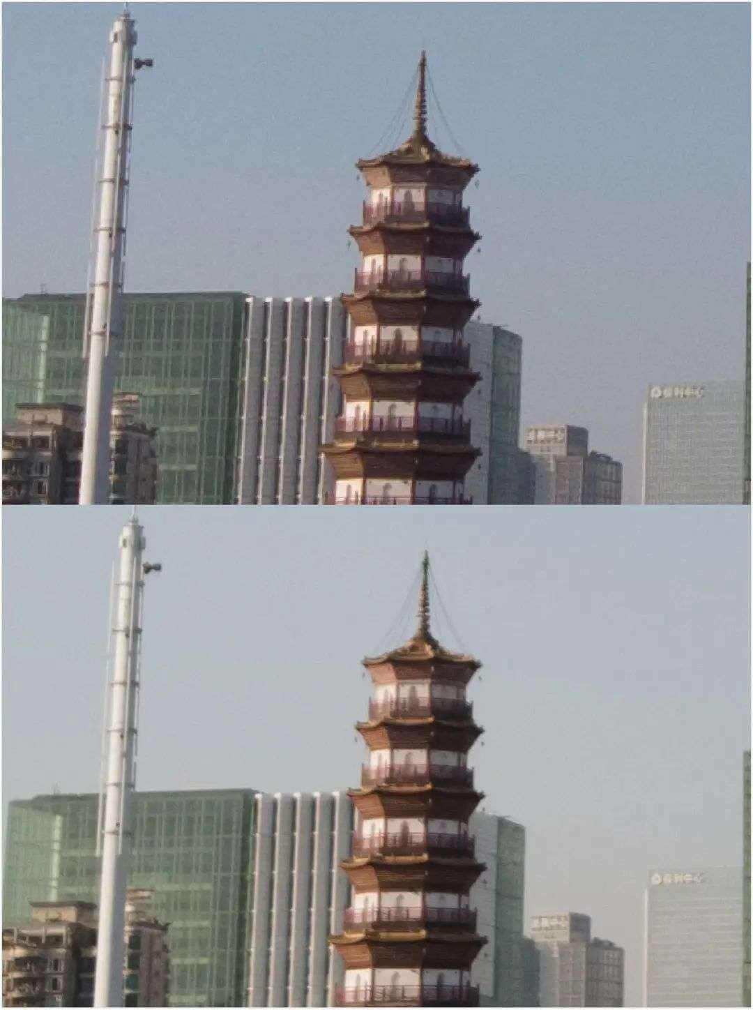 用样张说话,这两组都是在 RAW 格式下进行的对比,左为一代右为二代,可以明显看出,左边一代的细节开始模糊,已经能够看到像素颗粒的存在了,而且物体边缘有微微的紫边;而右边二代的照片依旧细腻,还有继续放大的余地。