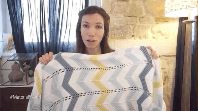 这个小姐姐,就将现实生活中的毛衣变成了院子里的床单的纹理。