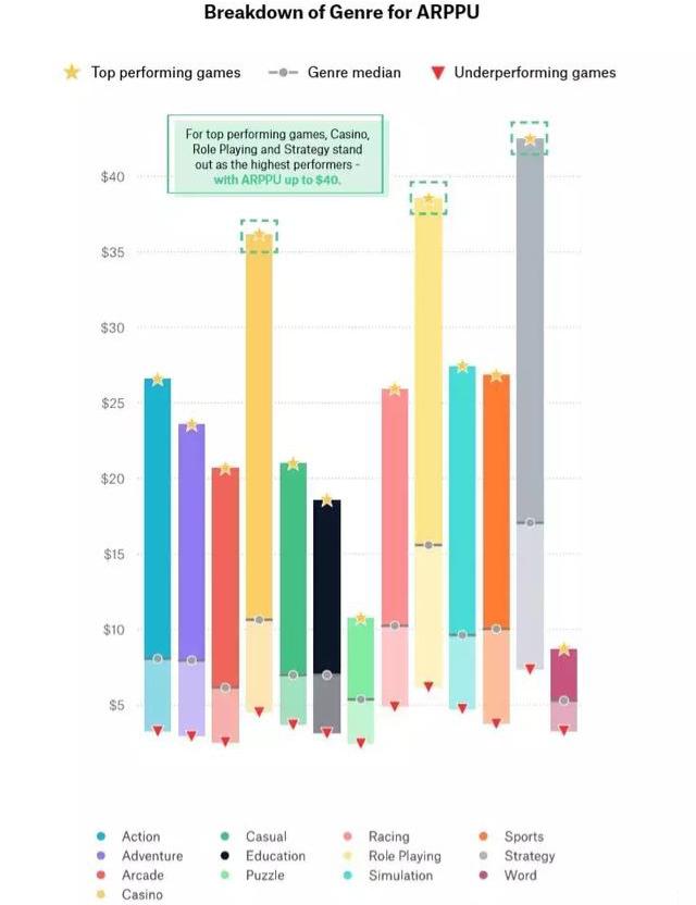 对于免费游戏来说,可以用流量付费转化率来分析。GameAnalytics发布了《全球手游分析报告》显示,中国玩家付费转化率仅为0.6%。虽然头部游戏的ARPPU比普通游戏高3-4倍,不过成本也高。数据方认为用留存率来评价游戏品质更合理。报告显示,月留存超过6%的游戏往往有更好的表现,还有15%的游戏在一个月之后留存率降到了0%。