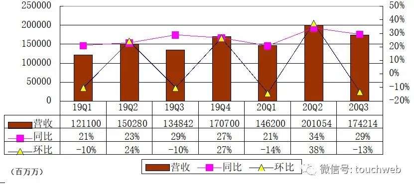 京东第三季度净收入为1742亿元(约257亿美元),同比增长29.2%。2020年第三季度净商品销售收入同比增长27.4%,净服务收入同比增长42.7%。