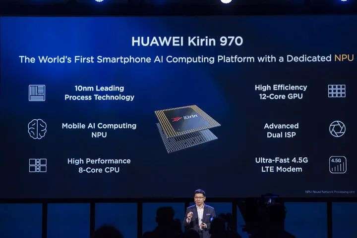 国内最早研究 NPU 的企业当属寒武纪。2017 年发布的麒麟 970 芯片,就曾采用寒武纪的 NPU 架构。麒麟 970 也成为世界首款移动端 AI 芯片。