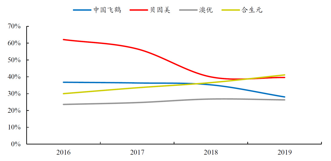 2016年飞鹤的业绩没有显著的提升,但是2017-2019年呈现出爆发式增长。飞鹤2019年营业收入137.22亿元,净利率高达28.7%。