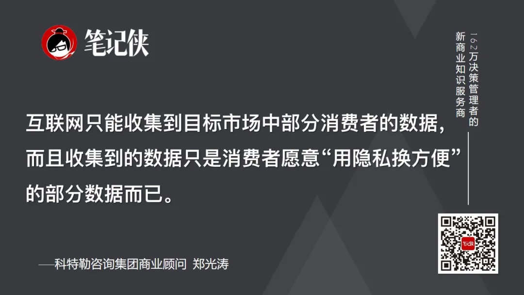 消费者的隐私观念:百度创始人李彦宏在2018年中国发展高层论坛上声称 “中国人愿意用隐私换方便”,遭到骂声一片。法律对数据隐私的保护:人民日报多次公开批评互联网APP非法收集和滥用用户数据的问题。需求的多变和数据的滞后:今天消费留下的数据,有多少可以印证明天的消费决策?