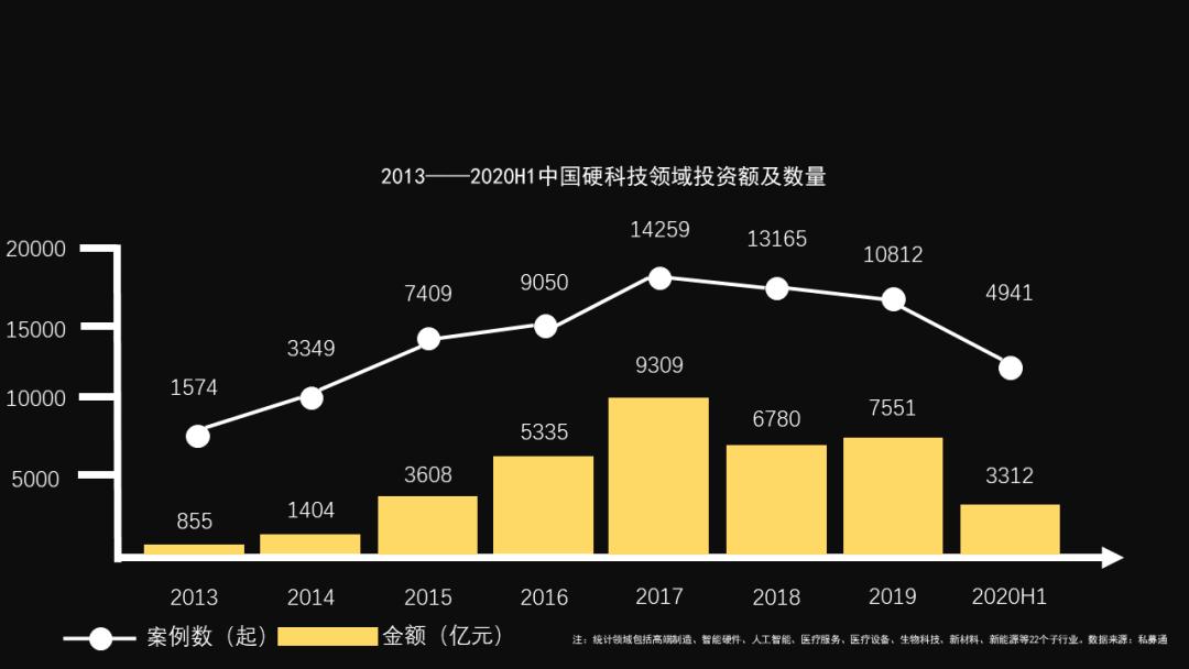 2013—2020H1中国硬科技领域投资额及数量