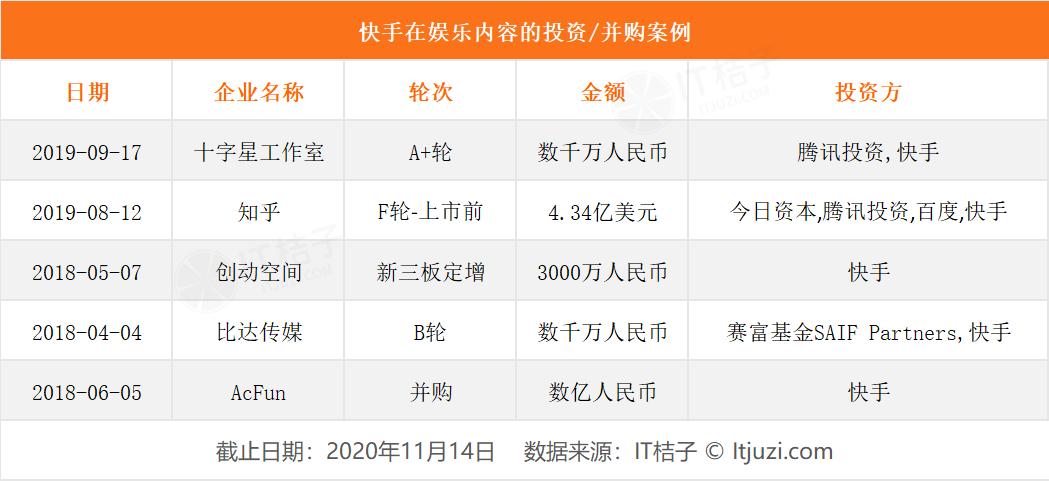 在围绕快手短视频及直播内容方面,至今快手参与了投资/并购了 5 家相关企业。