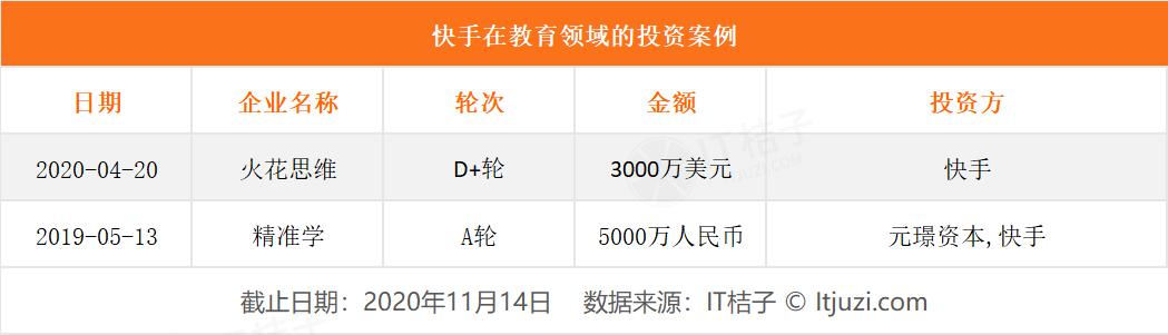 值得注意的是快手在教育内容领域的动作——2019 年 5 月 13 日快手参与投资了 K12 学科学习平台「精准学」。在此之前的 1 月,快手就与精准学达成战略合作,邀请一线教师参与快手课堂「名师计划」;2020 年快手领投了 3-10 岁在线教育平台「火花思维」D+轮融资。在投资客精准学与火花思维后,快手正可以借助两者的力量,有效的补充在 K12 教育领域的内容。