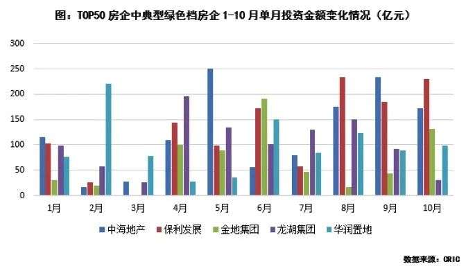 克而瑞研究中心数据显示,TOP50房企中红、橙和黄色三档企业的单月投资金额从9月开始下行,而绿色档企业9-10月拿地金额仍然居高不下,成为唯一拿地保持稳健偏积极的企业,甚至10月份拿地金额出现上扬的趋势。以本次积极举牌的中海为例,仅在7-10月份,中海的拿地金额较上半年拿地金额便已经上涨了15%。