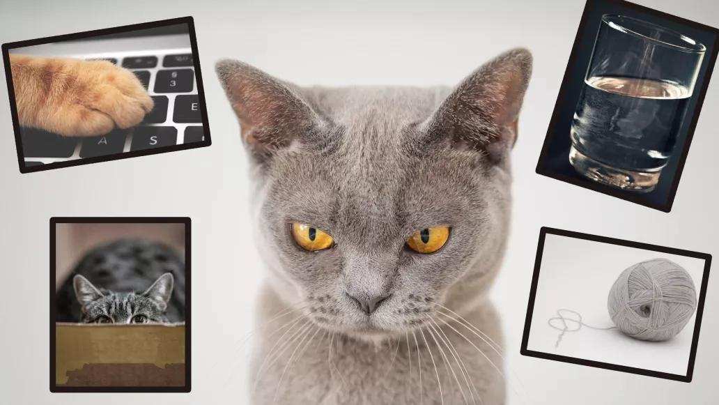 但这个过程并不那么容易实现。实际上,我们常用的图像描述是不适用的。比如下面这张图,通常的描述,只能识别出物体“猫”,或者和猫常常一起出现的局部事物“水杯、毛线球、盒子和猫爪”,并没有描述出这只猫的状态和相互关系。