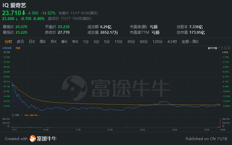 爱奇艺大跌14.62%,Q3营收同比下滑3%